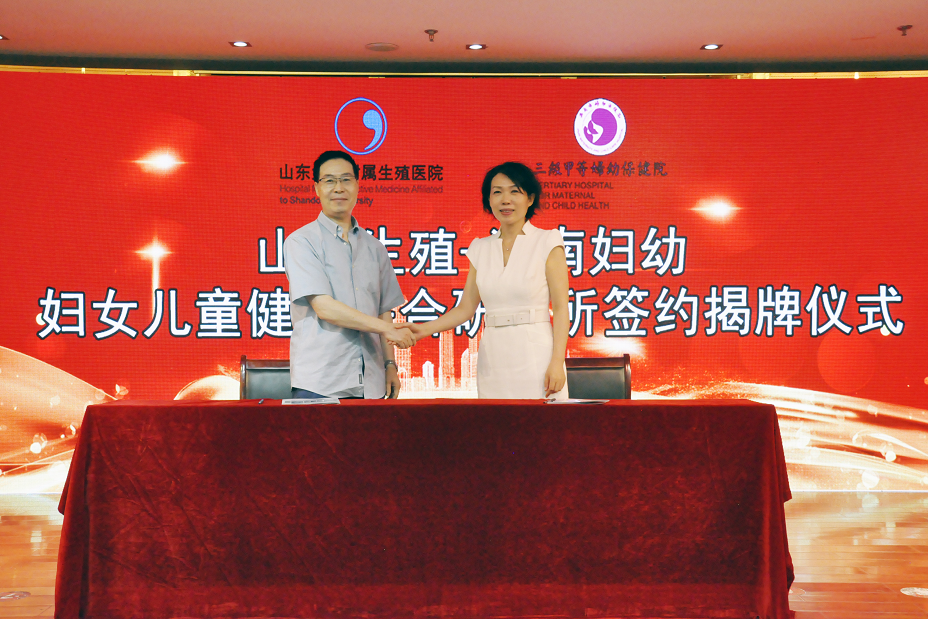 随后,马金龙院长与聂文英院长共同签署“山大生殖-济南妇幼妇女儿童健康联合研究所”成立合作协议。陈子江院士、刘洪渭书记、马金龙院长、李明强副局长、杨玉华副主任、聂文英院长共同上台,为“山大生殖-济南妇幼妇女儿童健康联合研究所”揭牌。