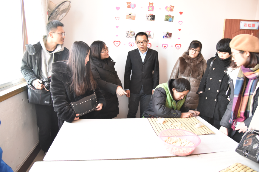 在战院长的带领下,我们参观了服务中心教室及宿舍。在手工制作教室,孩子们在老师的指导下正在聚精会神的进行手工制作。